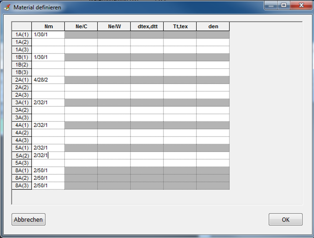 - Fadenanzahl entsprechend der Belegung eintragen.
