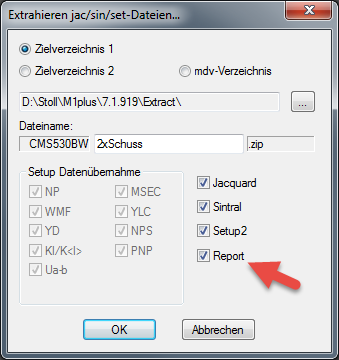 Report im Dialog Extrahieren jac/sin/set-Dateien… aktivieren.